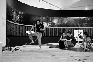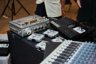 Performance, 2023Audio tape loops destructing by blades; cassette players and reel to reel tape recorder